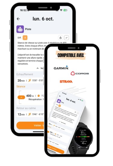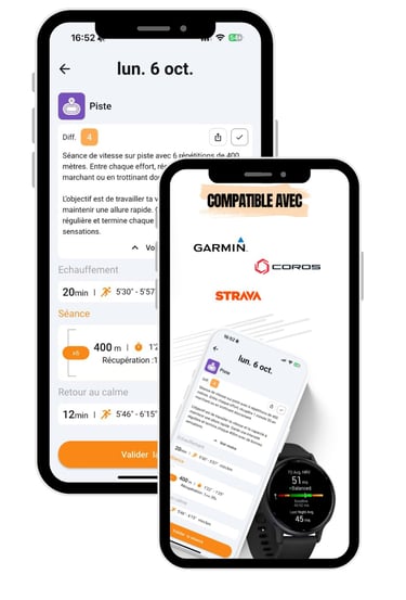 Possibilité d'exporter tes séances vers ta montre Garmin ou Coros