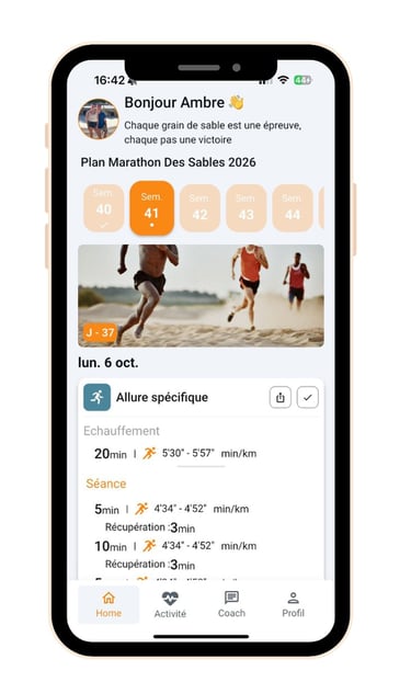 Suivi complet de ton historique et de ta progressions, importés depuis ta montre ou strava